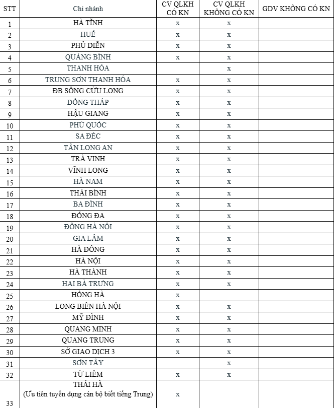 - Chỉ tiêu: 107 nhân sự (không kinh nghiệm)