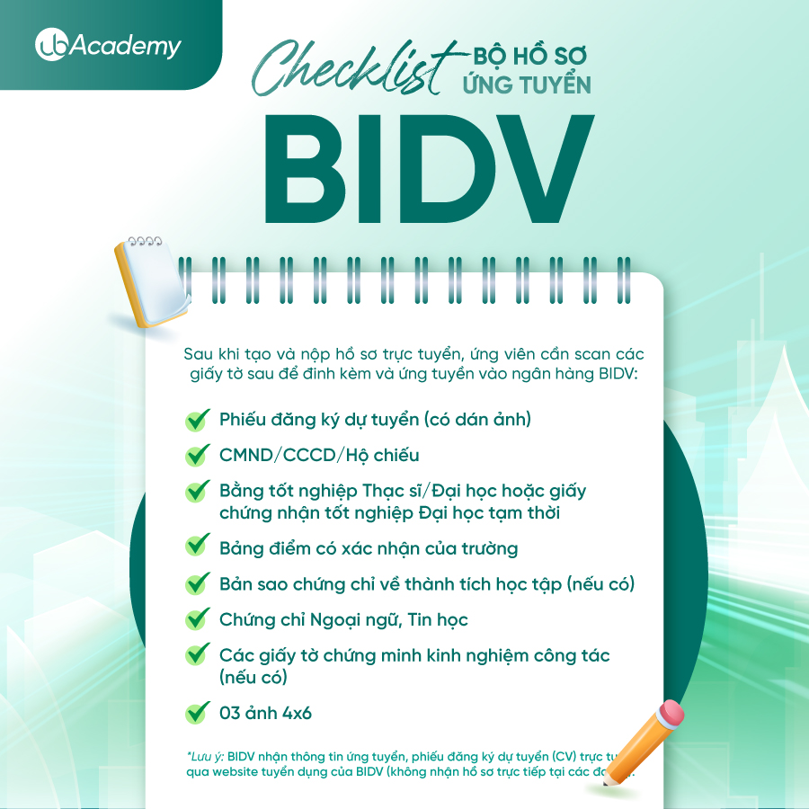 Ngân hàng BIDV chính thức thông báo tuyển dụng tập trung đợt III/2025, đợt cuối cùng trong năm. Để giúp các ứng viên đón đầu và nắm chắc đợt tuyển dụng này, UB Academy sẽ hướng dẫn bạn chi tiết về hồ sơ và kinh nghiệm thi tuyển BIDV mới nhất!