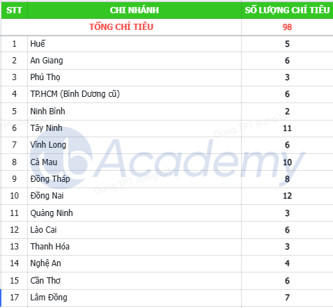 Ứng viên lưu ý: tin tuyển chỉ được đăng tải trên trang mạng xã hội của từng chi nhánh, báo đài địa phương và dán thông báo tại trụ sở chi nhánh.