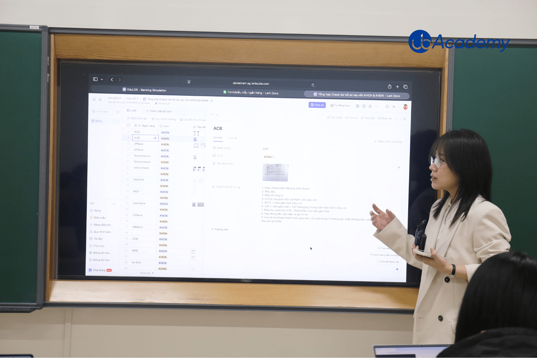 Từ nền tảng đó, sinh viên bước vào thị trường lao động với một lợi thế rõ ràng và đo được: hiểu nghiệp vụ – đúng quy trình – thao tác được trên hệ thống. Và hơn cả một “lợi thế”, đó là sự tự tin xuất phát từ trải nghiệm: đã từng làm, từng sai, từng sửa, từng hoàn thiện. UB Academy tin rằng chính những giờ học như vậy sẽ tạo ra một thế hệ nhân sự ngân hàng sẵn sàng hòa nhập nhanh hơn, làm việc chắc tay hơn, và có tư duy vận hành đúng chuẩn ngay từ ngày đầu tiên.